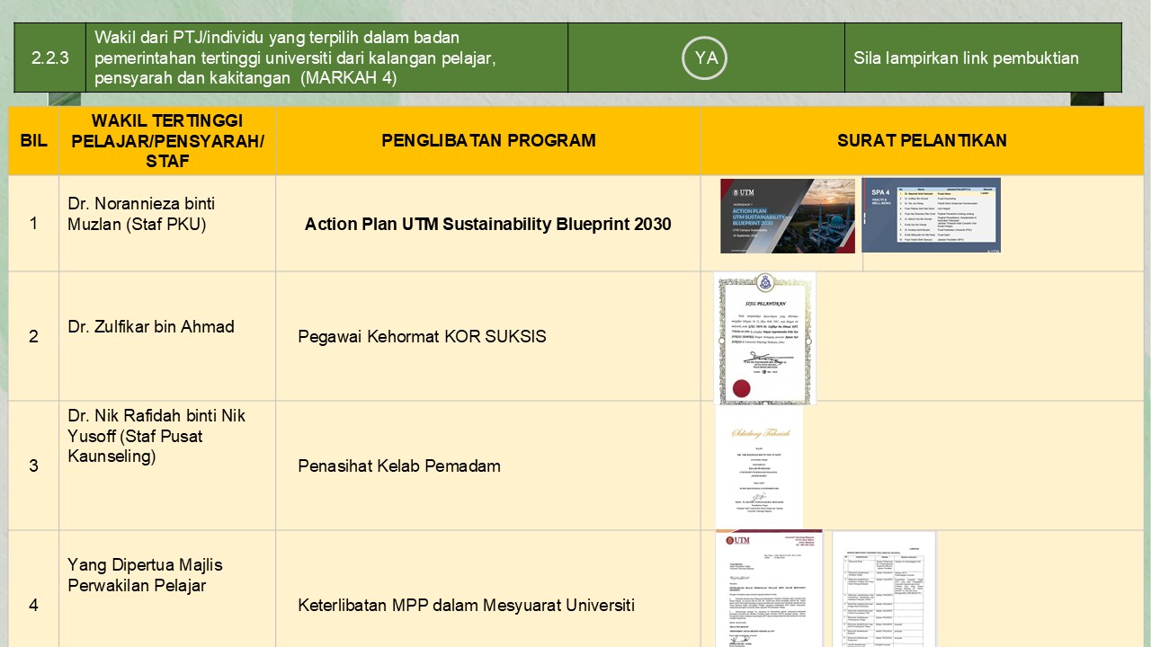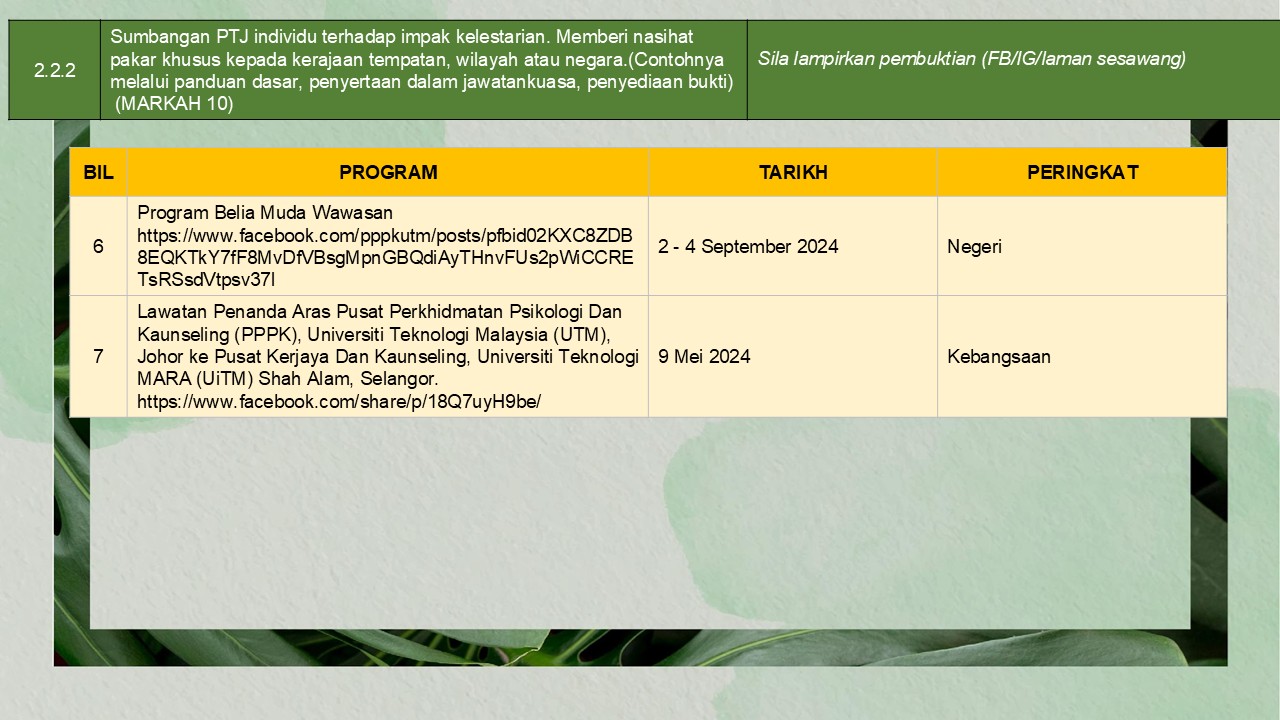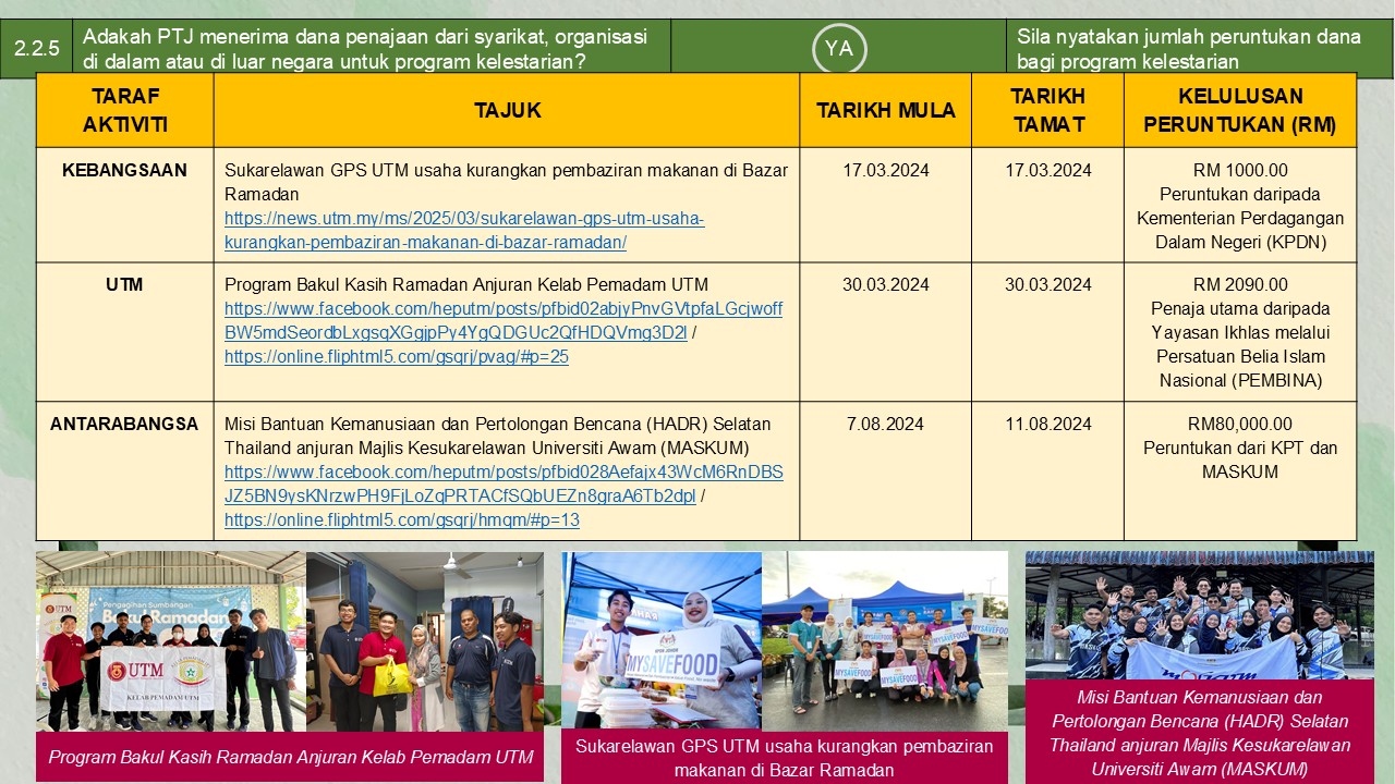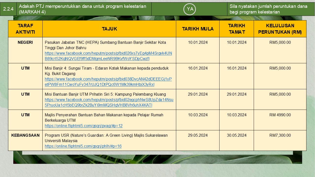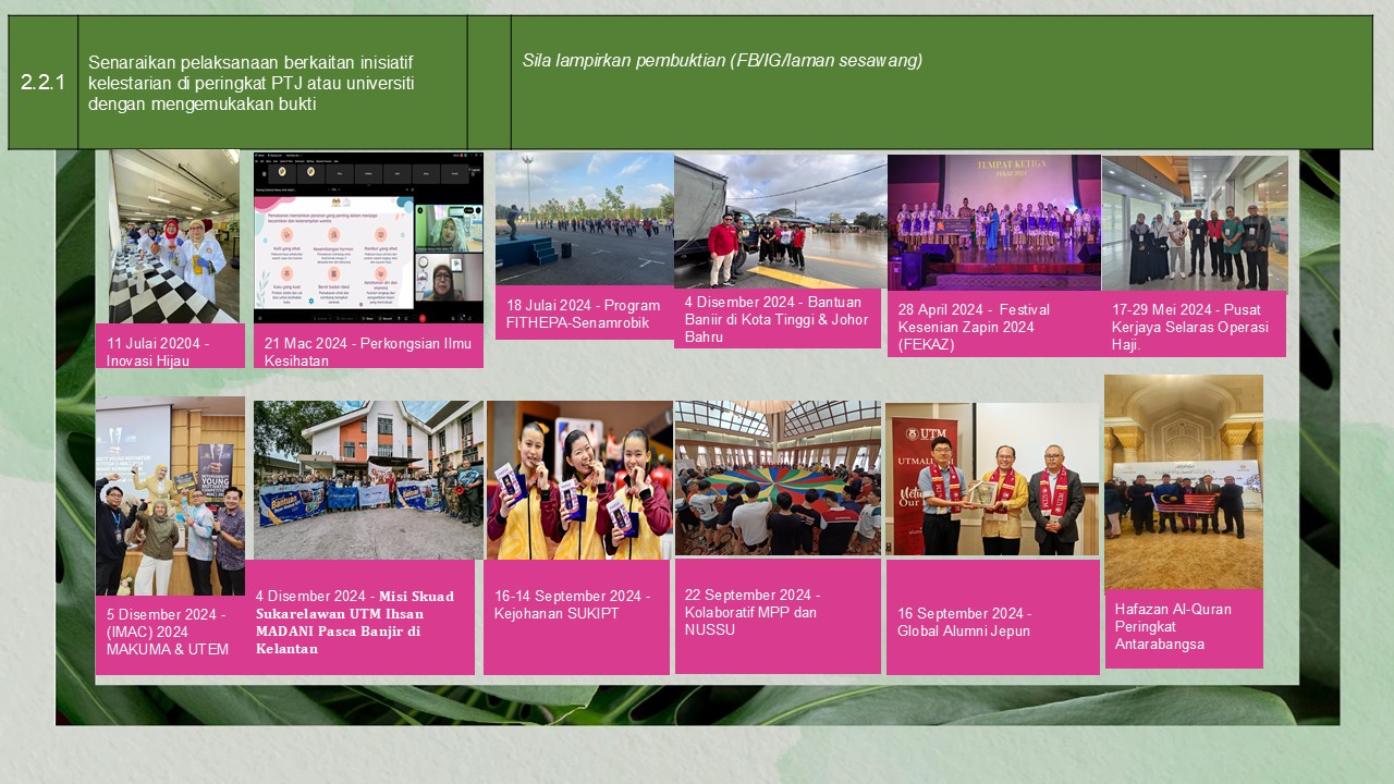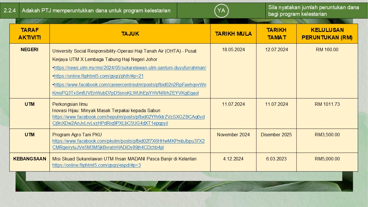 (pelaksanaan aktiviti kelestarian)