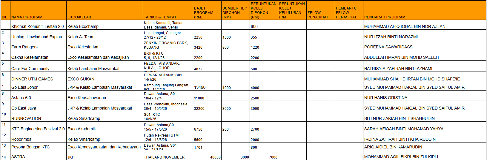 DANA UNTUK AKTIVITI KOLEJ TUANKU CANSELOR 25/26