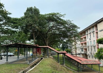 5.5.2.2 KEMUDAHAN SUSUR PEJALAN KAKI YANG SELAMAT Pihak kolej menyediakan susur pejalan kaki yang berbumbung untuk memudahkan pelajar sampai ke blok. Inisiatif ini dapat membantu pelajar menggunakan susur dengan lebih selamat.