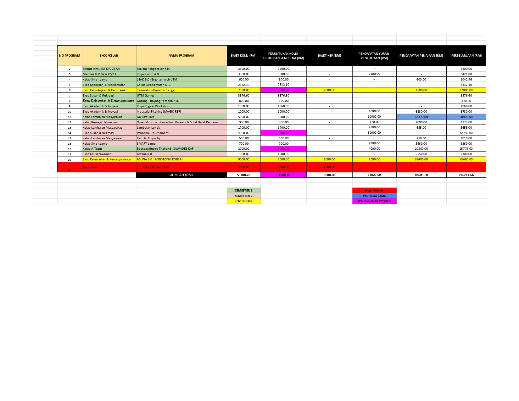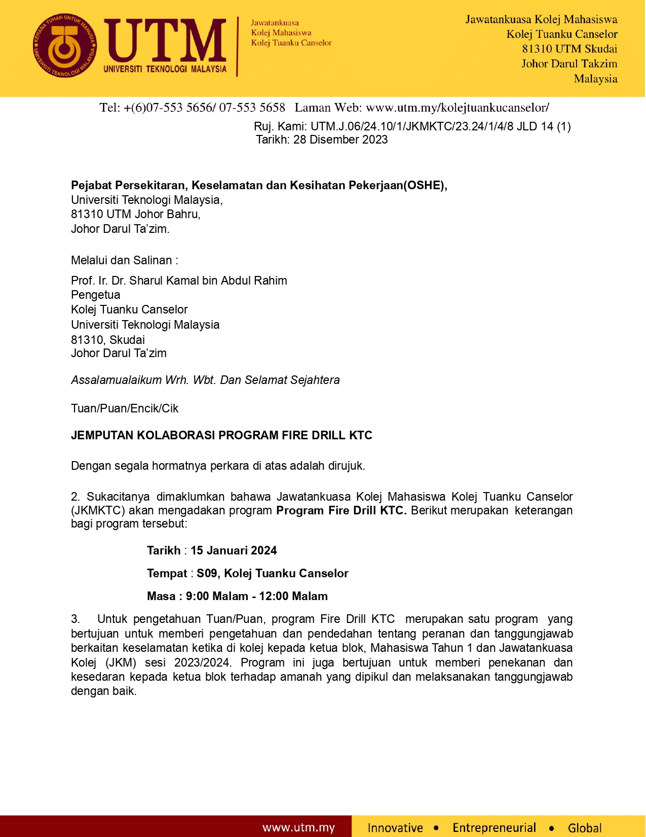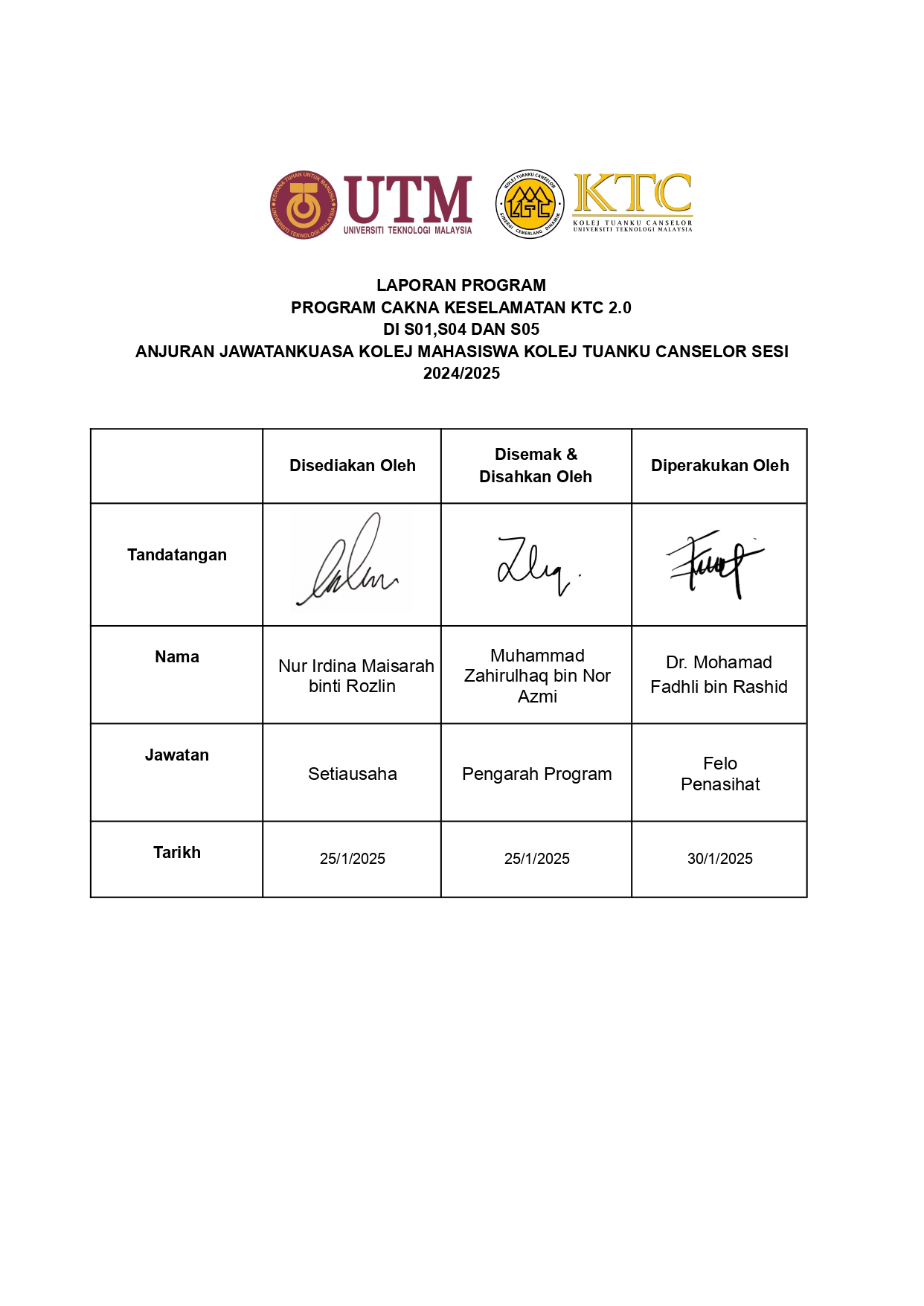 Program KTC Ceria yang diadakan selama 1 bulan bermula 14 November sehingga 14 Disember 2024. Program ini terdiri daripada 3 kempen iaitu Kempen Jimat Elektrik, Kempen Jimat Air, Kempen Kitar Semula dan 2 pertandingan iaitu Pertandingan Poster dan Pertandingan Pantun 4 Kerat. Program ini diadakan bertujuan meningkatkan kesedaran moral dalam kalangan pelajar supaya lebih cakna akan kelestarian kolej.