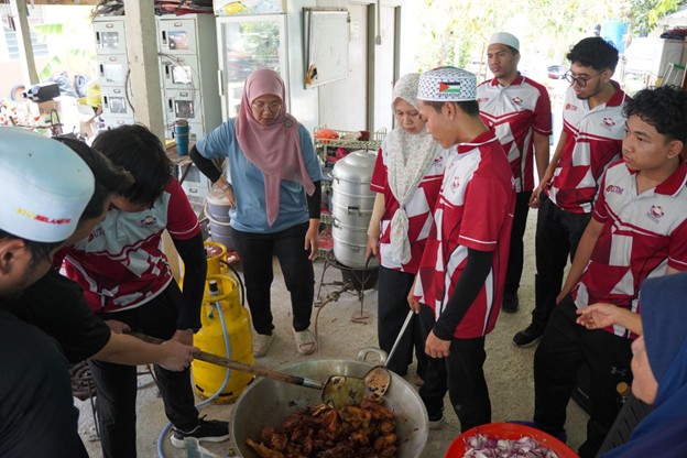 Menjelang petang, suasana bertukar menjadi lebih formal namun tetap meriah. Peserta mengenakan Baju Melayu lengkap berkopiah dan Baju Kurung bagi sesi Persiapan Kenduri. Kerjasama ini memuncak pada acara Kenduri Perdana Sambut Ramadhan, di mana semua pihak berkumpul untuk berdoa dan makan bersama, mencerminkan keharmonian komuniti (SDG 11).